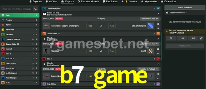 A aposta b7 game oferece aos jogadores a experiência mais conveniente de apostas em eSports!